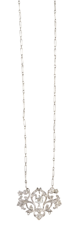 Collar largo de pequeñas ramas de con cierre de oro bajo. Longitud: 82 cm.