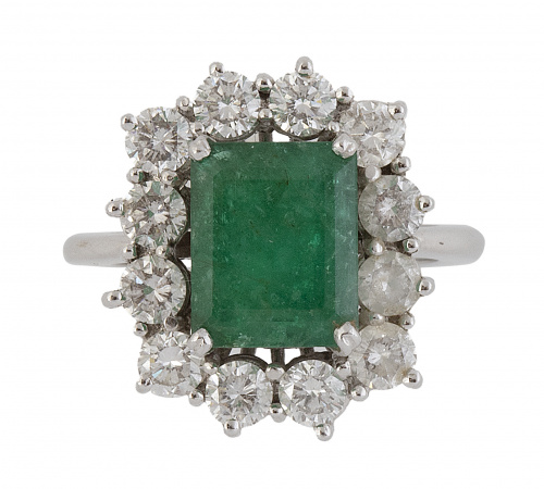 322. Sortija de esmeralda talla esmeralda orlado de brillantes engastados en garras