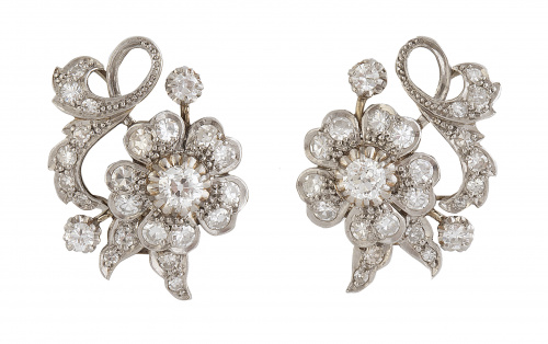 Home / SUBASTA DICIEMBRE 2022 / Pendientes de brillantes años 50 con diseño de flor y rama