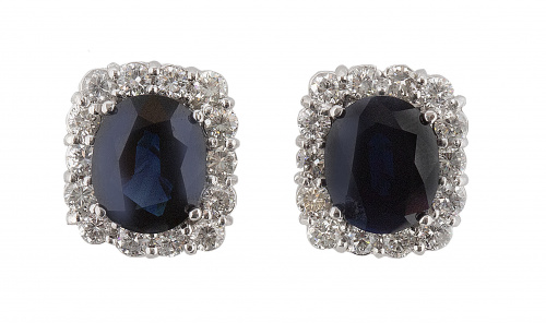 351. Pendientes de zafiros de talla oval, uno de 4 y otro de 4,58 ct, orlados de brillantes