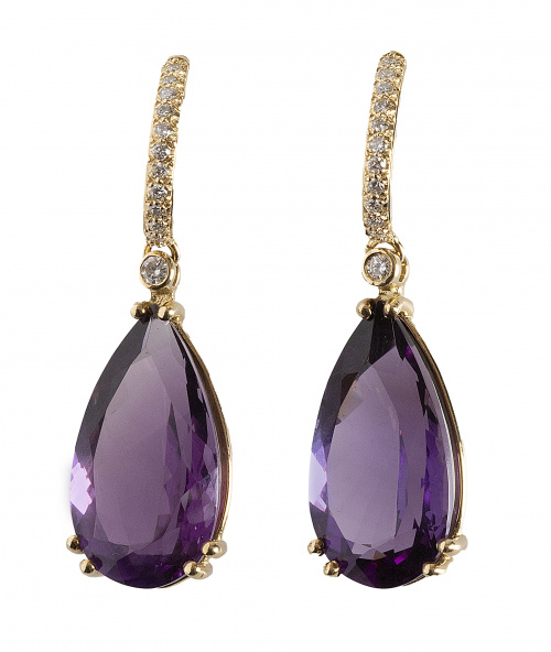 Home / SUBASTA DICIEMBRE 2022 / Pendientes largos con amatistas de talla pera con chatón de