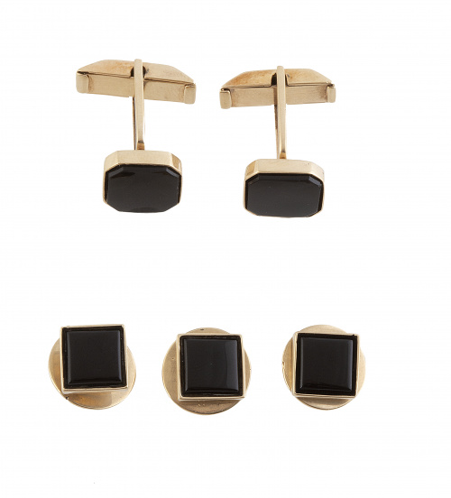 Botonadura pp. S. XX con tres botones y gemelos con piezas principales cuadradas de ónix biselado