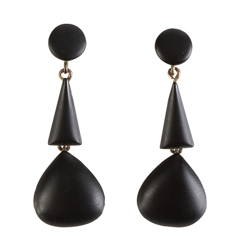48. Pendientes largos de pp. S. XX con tres piedras negras matizadas de diseño geométrico articuladas