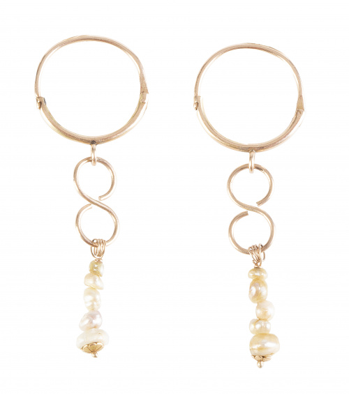 5. Pendientes largos populares S. XVIII-XIX con líneas de perlas de aljófar colgantes