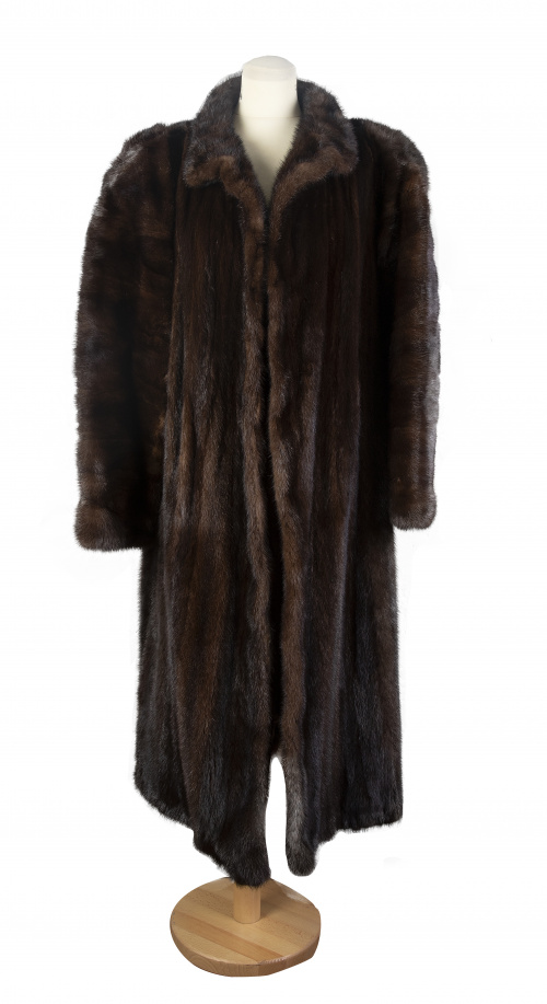 500. Abrigo largo de visón, mangas anchas, cuello de solapa y bolsillos laterales