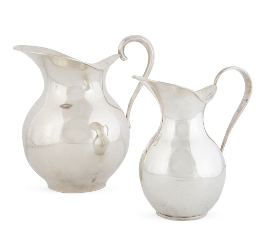 Dos jarros de plata de diferente tamaño. Con marcas.