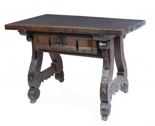 Home / SUBASTA DICIEMBRE 2022 / Mesa de madera de nogal tallada.Trabajo del norte de Espa
