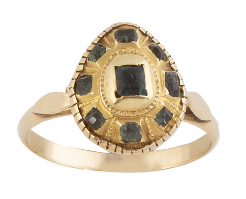 7. Sortija popular S.XVIII-XIX con diseño de gota de esmeraldas