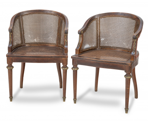 Pareja de bergeres de estilo Luis XVI con asiento cané.