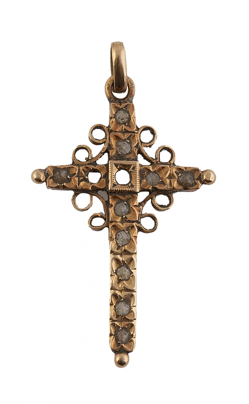 Cruz colgante S. XIX con diamantitos