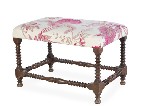 Banqueta Felipe V de madera de nogal tallada.