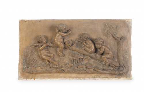 Home / SUBASTA DICIEMBRE 2022 / J.D. García.Placa de barro cocido con "putti" subidos a u