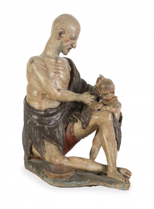Home / SUBASTA DICIEMBRE 2022 / Anciano con niño.Escultura de barro cocido.Escuela espa