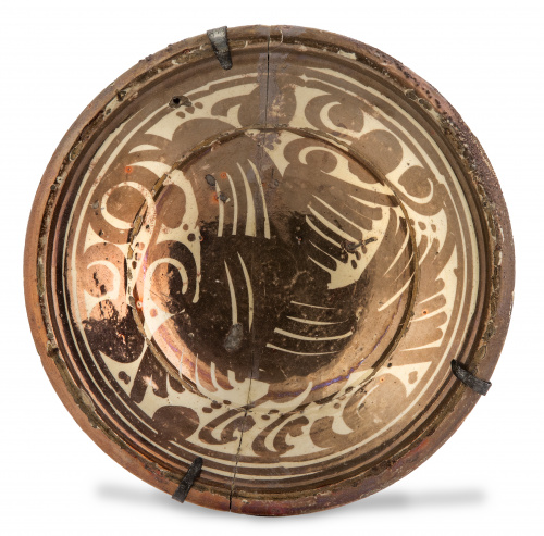1100. Plato en cerámica de reflejo metálico con "pardalot".