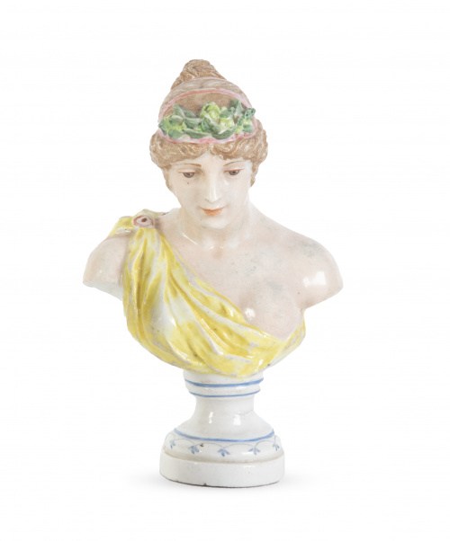Figura mitológica femenina de medio busto de porcelana esmaltada.