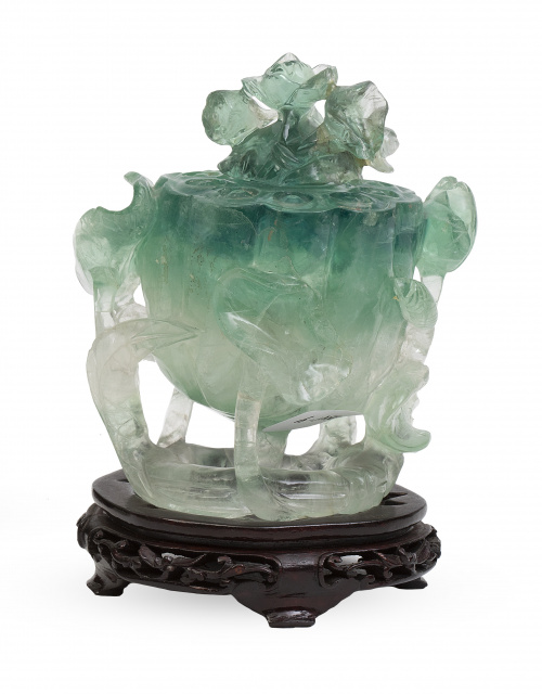 Home / SUBASTA DICIEMBRE 2022 / Incensario verde y blanco tallado. Sobre peana de madera ta