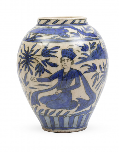 1234. Jarrón de cerámica esmaltada en azul y blanco.