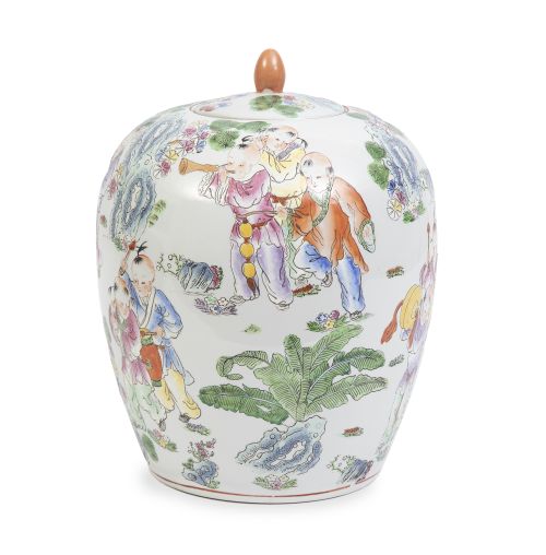 Home / SUBASTA DICIEMBRE 2022 / Tibor con tapa de porcelana esmaltada con niños jugando.C