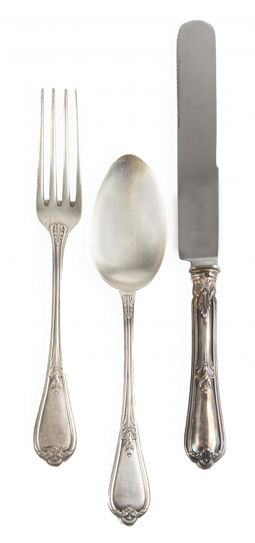 1330. Cubertería de plata de seis servicios. Con marcas.
