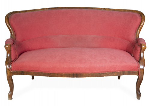 1331. Sofá de madera de nogal tallada.