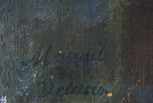 Este retrato de don Manuel de Velasco es de algo menos de medio cuerpo, en posición de tres cuartos, y no tiene representadas las manos del retratado. El nombre que lo identifica aparece escrito en el ángulo inferior izquierdo, lo que me ha permitido identificarlo con don Manuel de Velasco y Coello, que era vecino y regidor perpetuo de la villa y corte de Madrid. Rico hacendado en la villa del Prado desde antes de 1765, en dicho año entabló un pleito en la sala de Hidalgos de la Real Chancillería de Valladolid. Este acomodado personaje, dueño de tierras y ganados en la madrileña villa de Prado, era un claro representante de esa pequeña nobleza propietaria que prosperó en el reinado de Carlos III. Es muy posible que heredase el puesto de regidor perpetuo de Madrid de una familiar por vía materna, doña Casilda Manuela Coello, que en 1747 arrendó su regimiento a don Francisco Milla por 5.500 reales de renta al año. Estuvo casado con Basilia Ferreira y Campo, con la que tuvo diez hijos, el menor de los cuales fue el destacado militar de ideas liberales Manuel de Velasco, Coello y Ferreira (Madrid, 1776 - Cádiz, 1824). Manuel de Velasco encargó a Francisco Bayeu, el mejor pintor de España en ese momento, que dejase plasmada su imagen en un sencillo retrato, para colocarlo en la sala de su domicilio madrileño como signo de distinción. Era una manera de reafirmar su posición en la sociedad cortesana de finales del Antiguo Régimen.