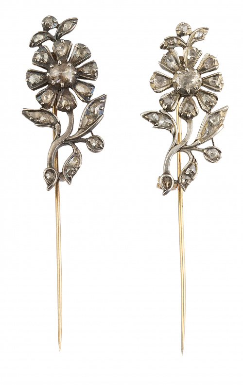 10. Conjunto de dos alfileres S. XVIII con motivos florales de diamantes