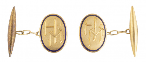 Gemelos de pp. S. XX con iniciales y marco de esmalte azul