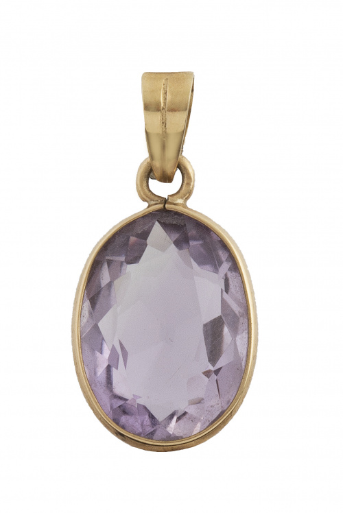 Home / SUBASTA MARZO 2023 / Colgante de amatista facetada con marco de oro liso