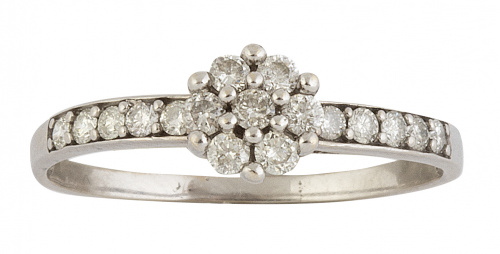 253. Sortija de rosetón de brillantes con brillantes adornando los brazos de la montura