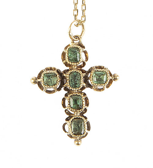 Cruz colgante de esmeraldas S. XIX con cadena fina