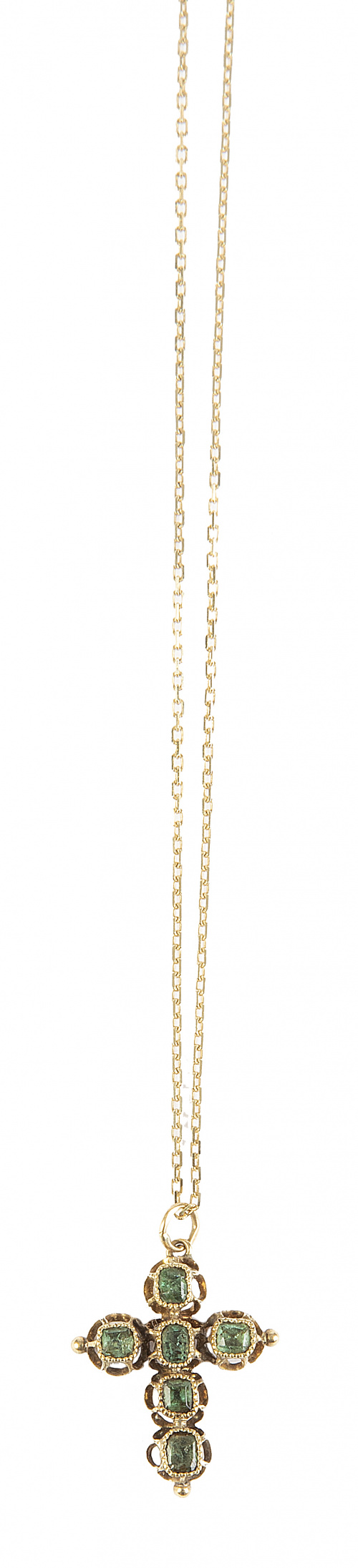 26. Cruz colgante de esmeraldas S. XIX con cadena fina