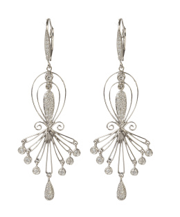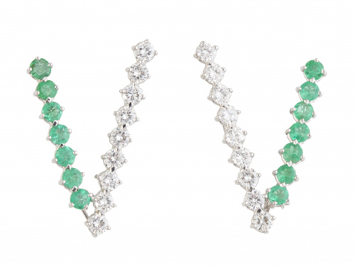 276. Pendientes con diseño en "V" de brillantes y esmeraldas