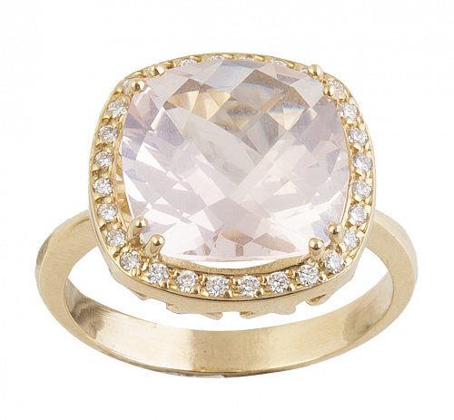 294. Sortija con cuarzo rosa cuadrangular con talla fantasía, rodeado de brillantes