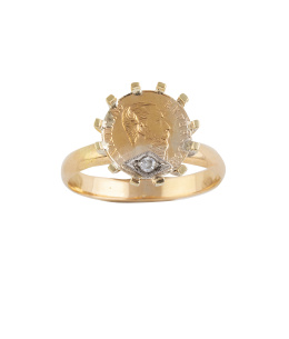 Home / SUBASTA MARZO 2023 / Sortija pp. S. XX con brillante central de 0,38 ct entre ba