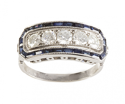 Sortija cintillo de brillantes orlado de zafiros calibrados