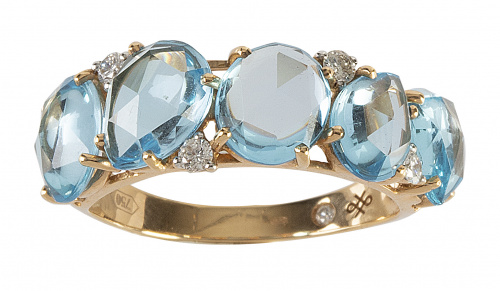 Sortija cintillo de topacios azules ovales de talla fantasía combinados con brillantes