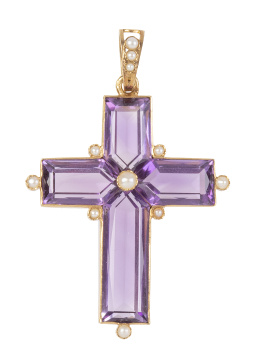 Home / SUBASTA MARZO 2023 / Cruz colgante popular S. XIX de esmeraldas y símil esmerald