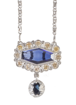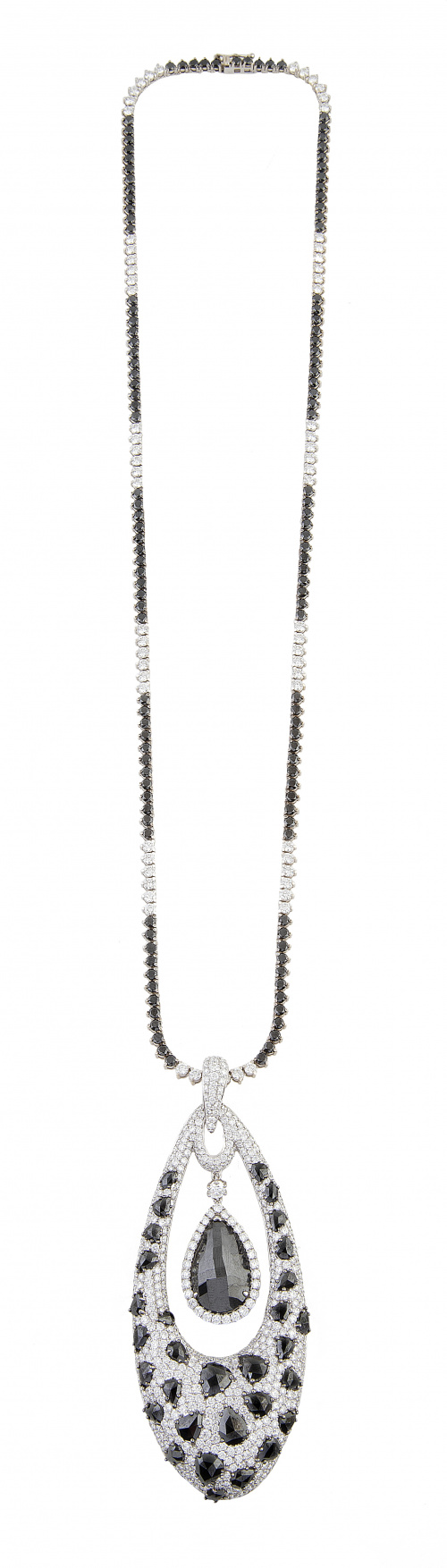 421. Pendentif de brillantes negros e incoloros, con gran diamante negro colgante como centro de motivo en forma de gota