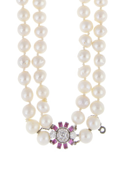 Con collar de rivière de brillantes negros y blancos combinados.