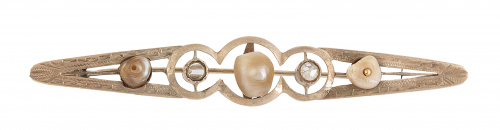 47. Broche barra de pp. S. XX en oro bajo y perlas de aljófar