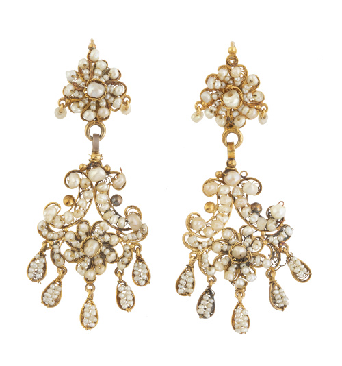 5. Aderezo salmantino S. XVIII con cruz de pecho y pendientes largos de perlas de aljófar