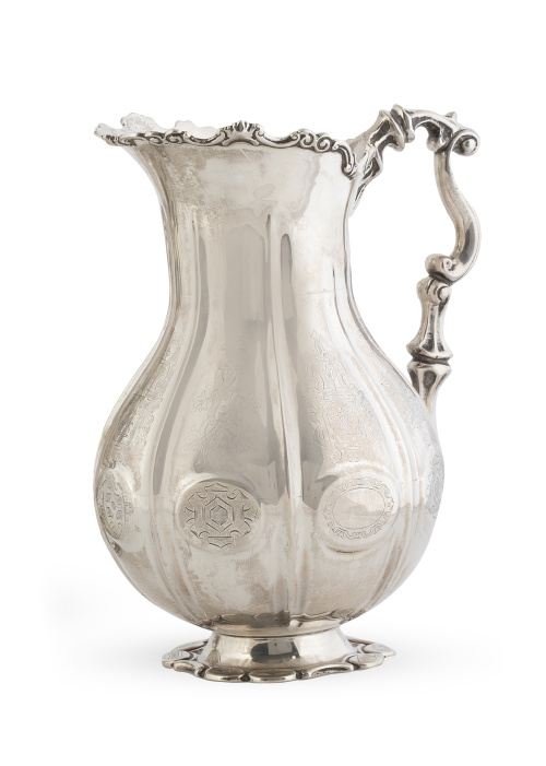 Jarro de plata. Conserva restos de etiqueta en la base.
