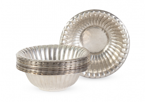 Lote de doce lavafrutas de plata, nueve de ellos de Montejo y otros dos de Pérez Fernández. Con marcas.