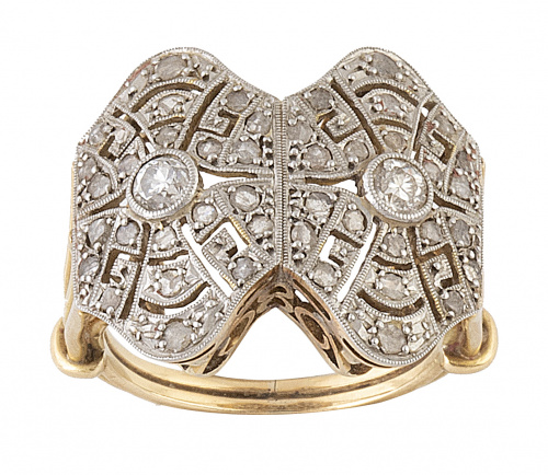 Home / SUBASTA MARZO 2023 / Sortija Art-Decó con doble rombo de diamantes con dos brill