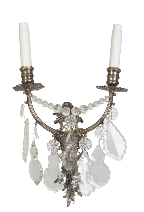 616. Aplique de dos brazos de luz, con pandelocas y cadeneta.