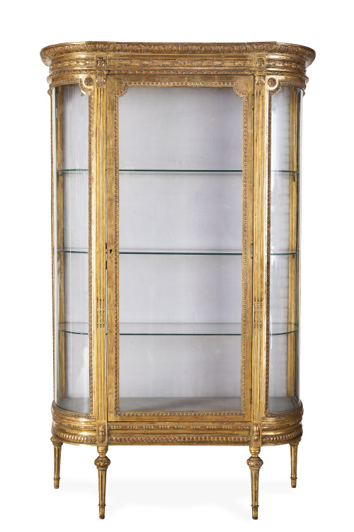 Vitrina en madera tallada y dorada de estilo Luis XVI.