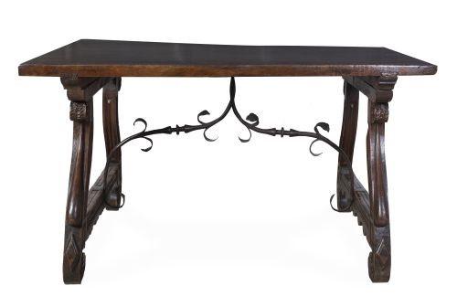 Home / SUBASTA MARZO 2023 / Bufete de madera de nogal y fiadores de hierro decorados co
