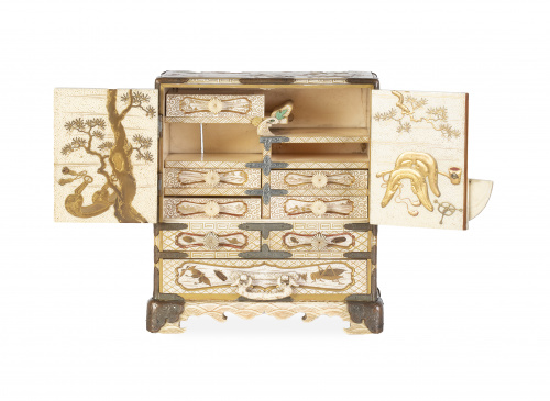 Armario estilo Shibayama de marfil, con decoración en dorado.