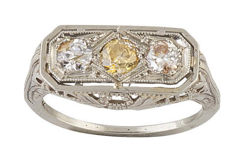 81. Sortija tresillo de brillantes Art-Decó con brillante yellow central