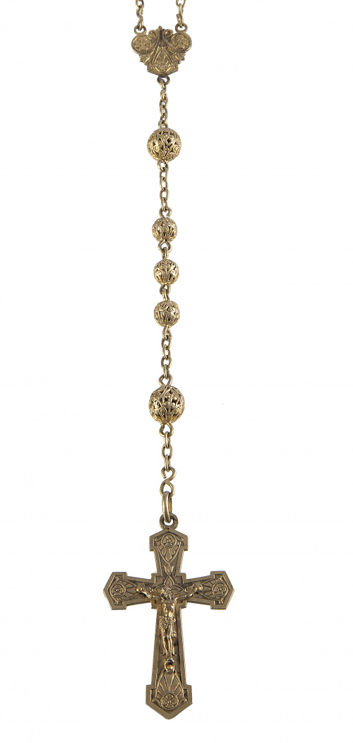 Rosario de pp. S. XX con cuentas de filigrana en plata dorada